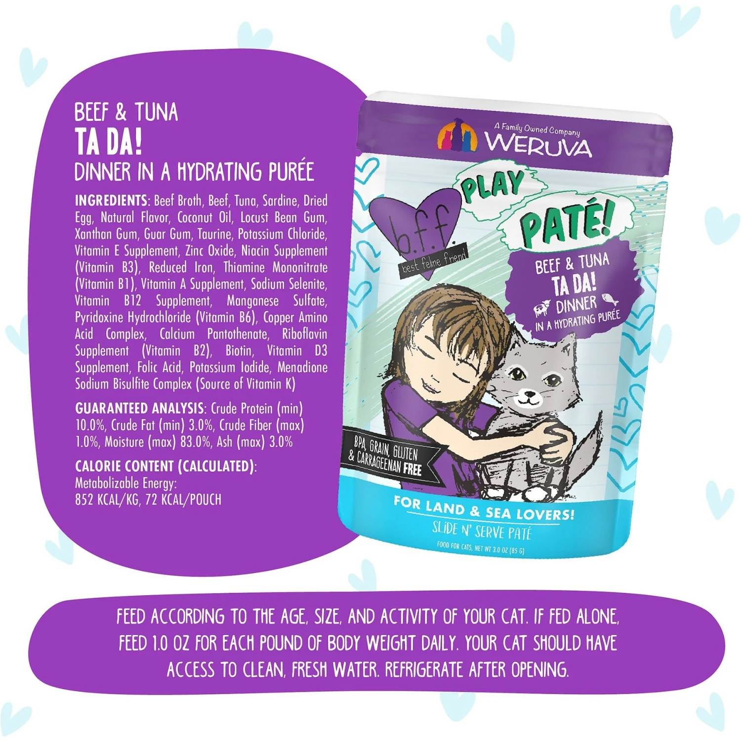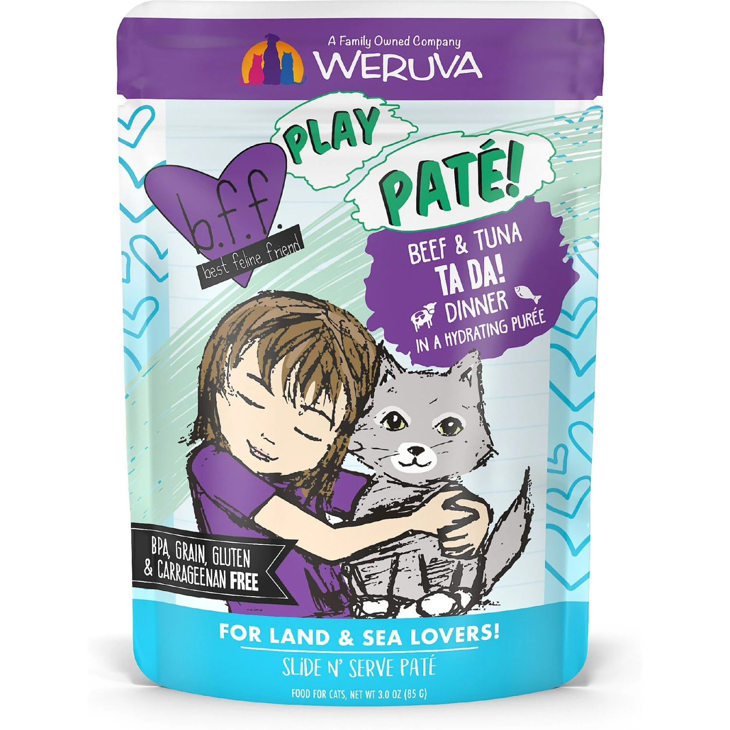 BFF Play Pate Lovers Beef & Tuna Ta Da Wet Cat Food, 3-oz Pouch, Pack Of 12