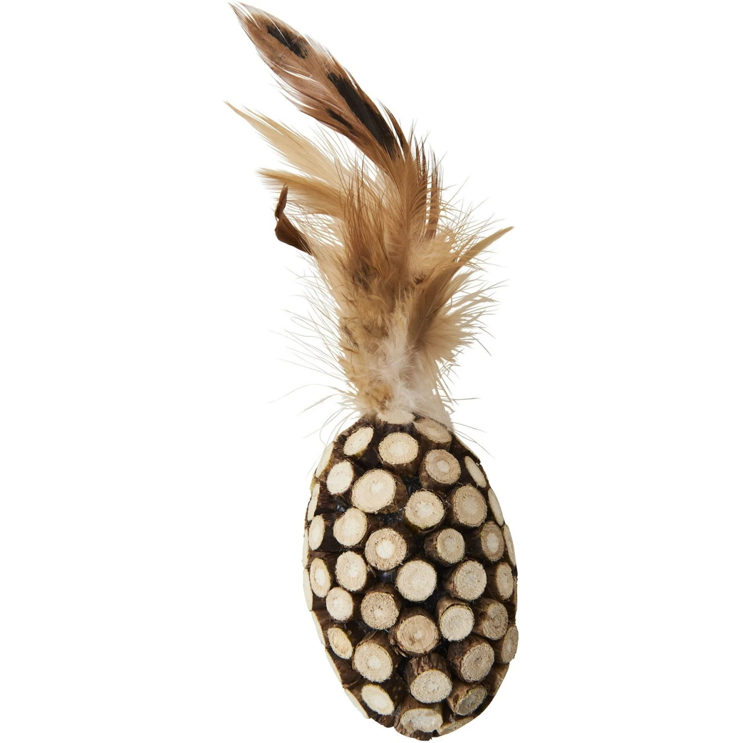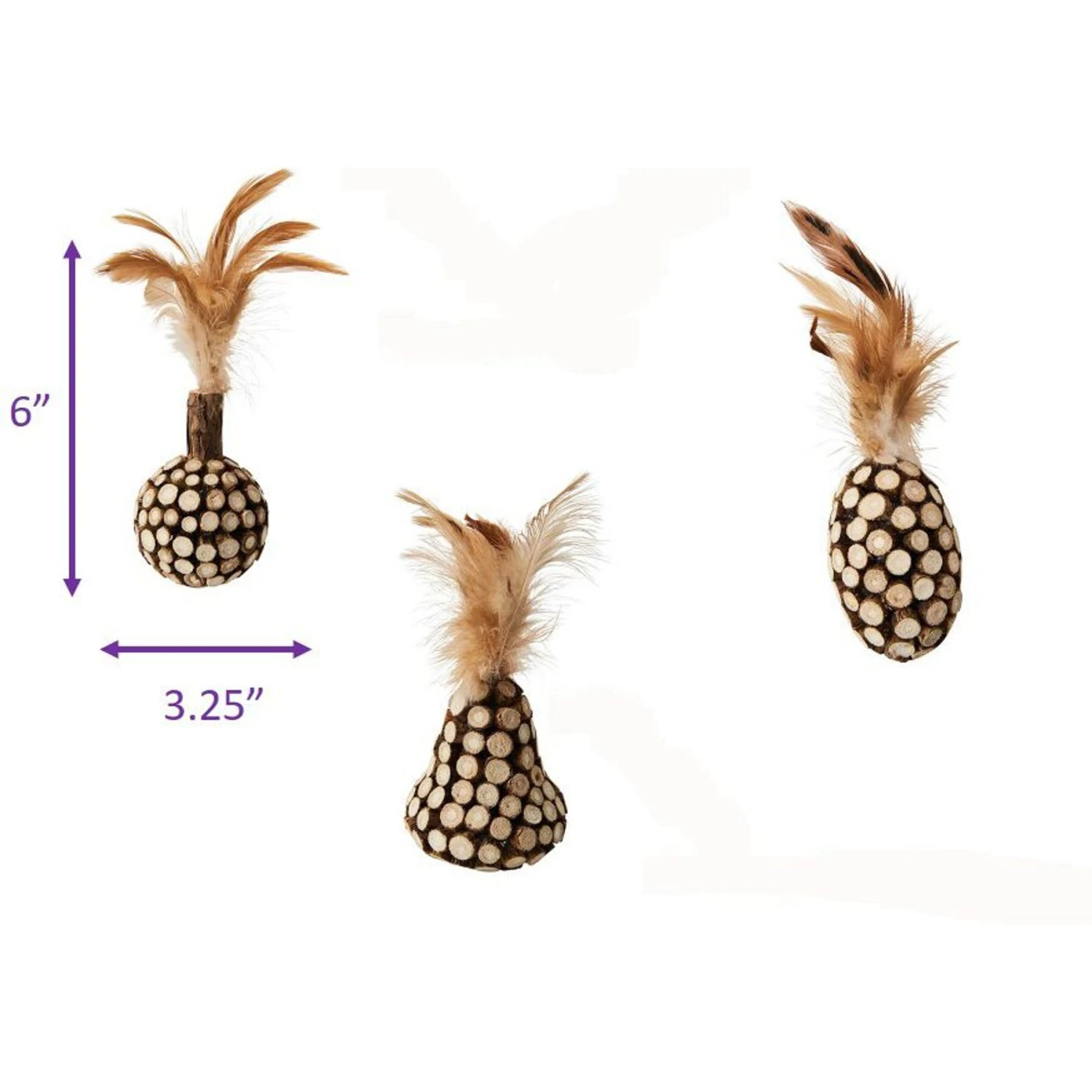 - Toy features sticks and feathers to help capture your kitty’s attention.