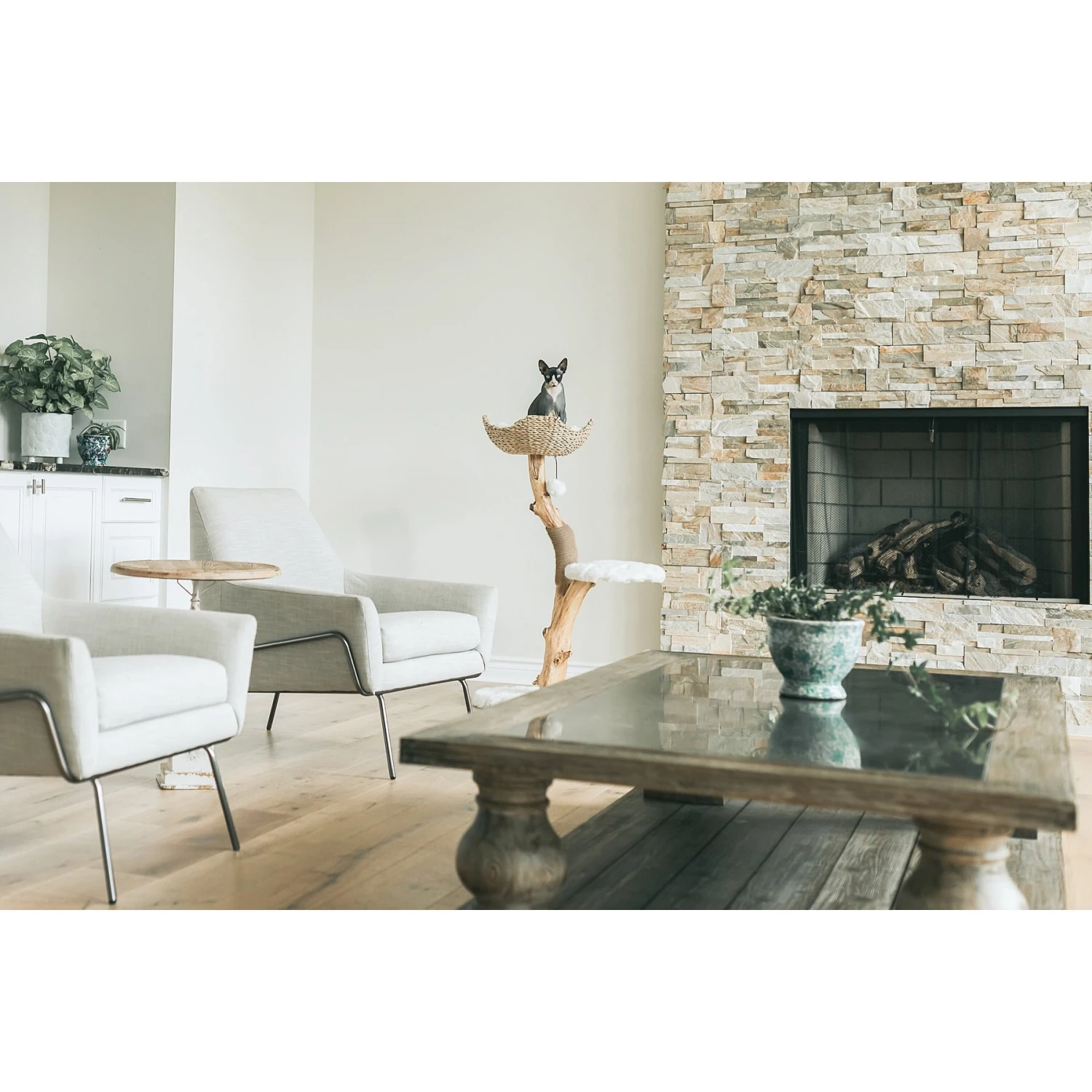 - Each piece is handmade, and this cat tree is made using real branches!