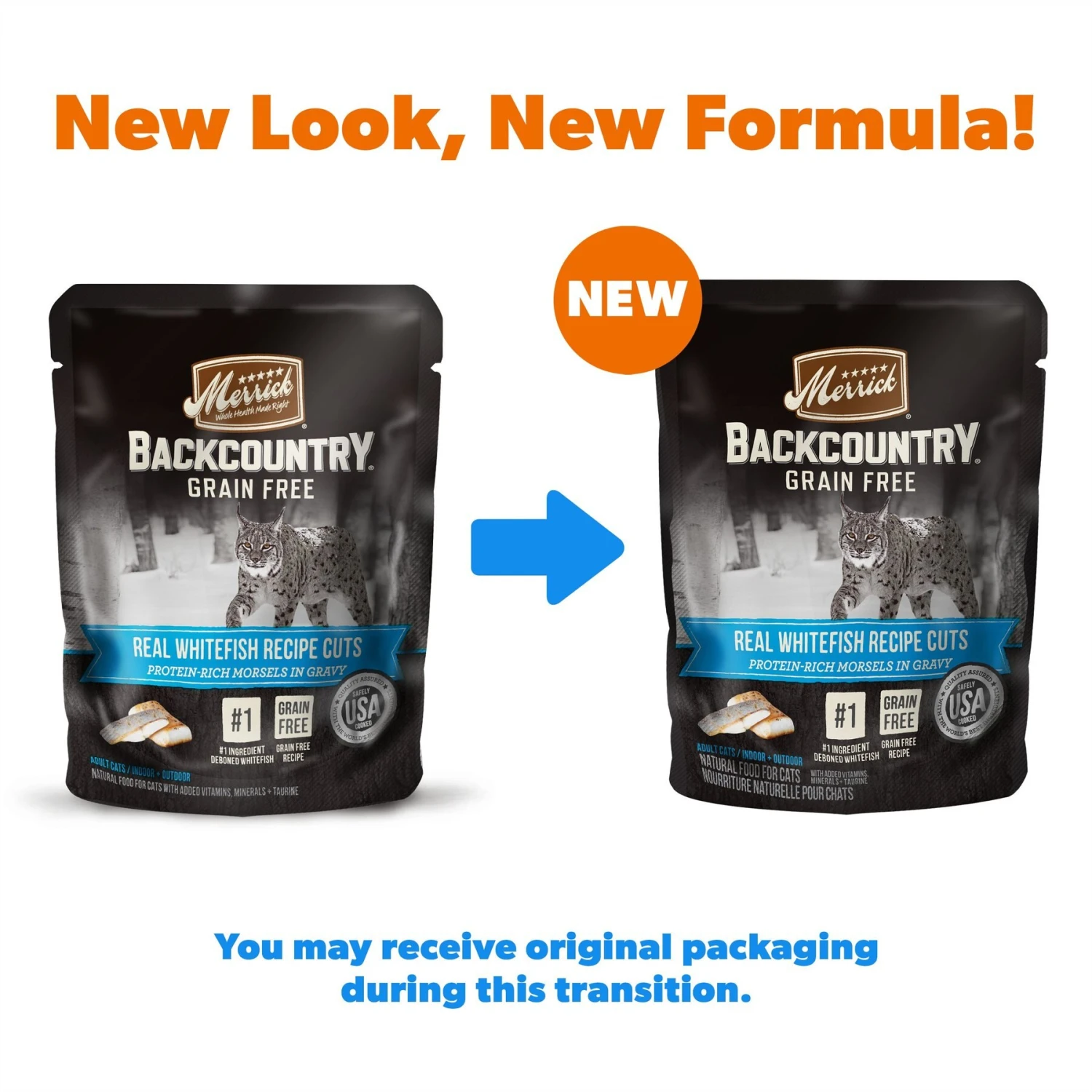 Merrick Backcountry Grain-Free Morsels In Gravy Real Whitefish Recipe Cuts Cat Food Pouches
