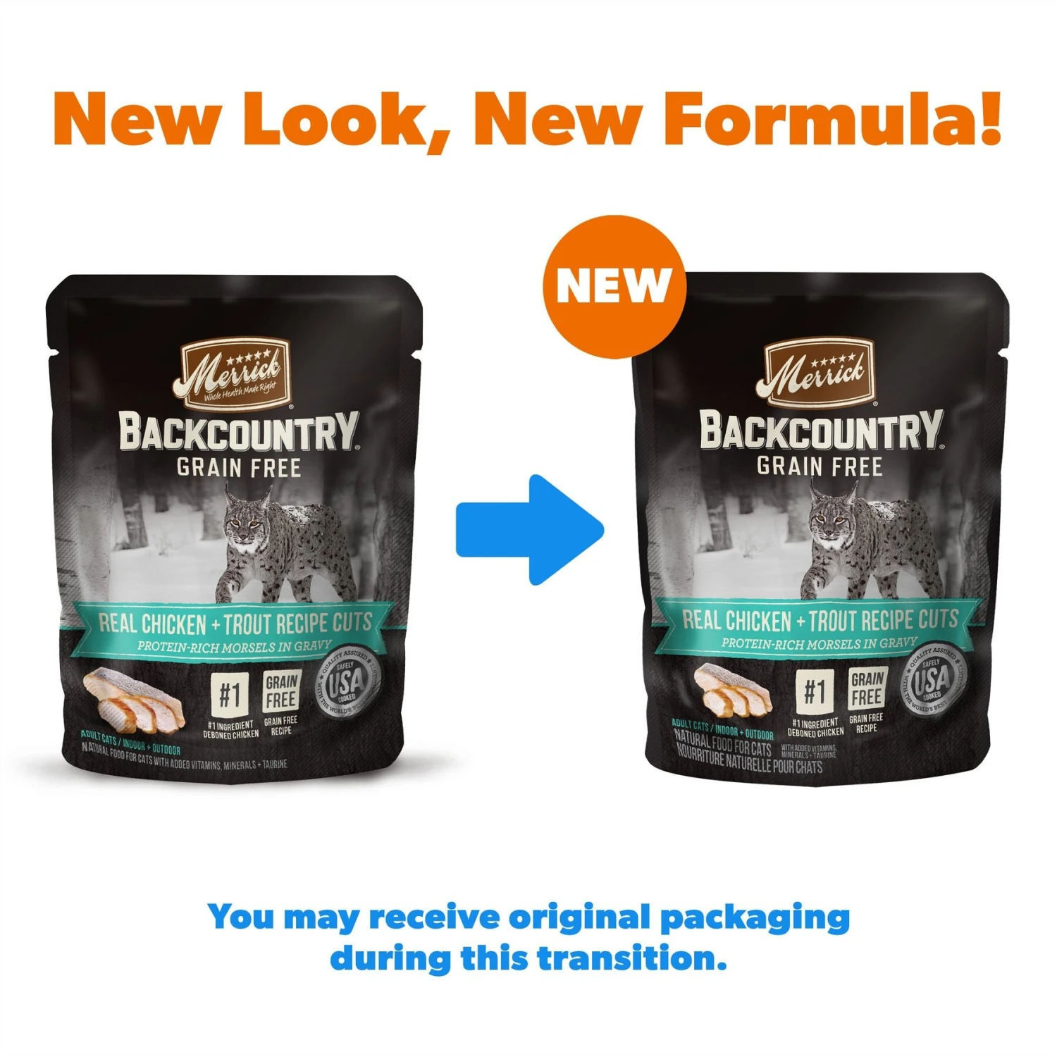 Merrick Backcountry Grain-Free Real Chicken & Trout Recipe Cuts Morsels In Gravy Cat Food Pouches