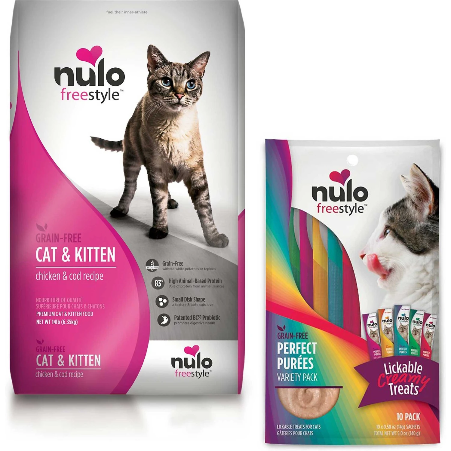 Nulo Freestyle Chicken & Cod Recipe Grain-Free Dry Cat & Kitten Food & Nulo Freestyle Perfect Purees Variety Pack Grain-Free Lickable Cat Treats