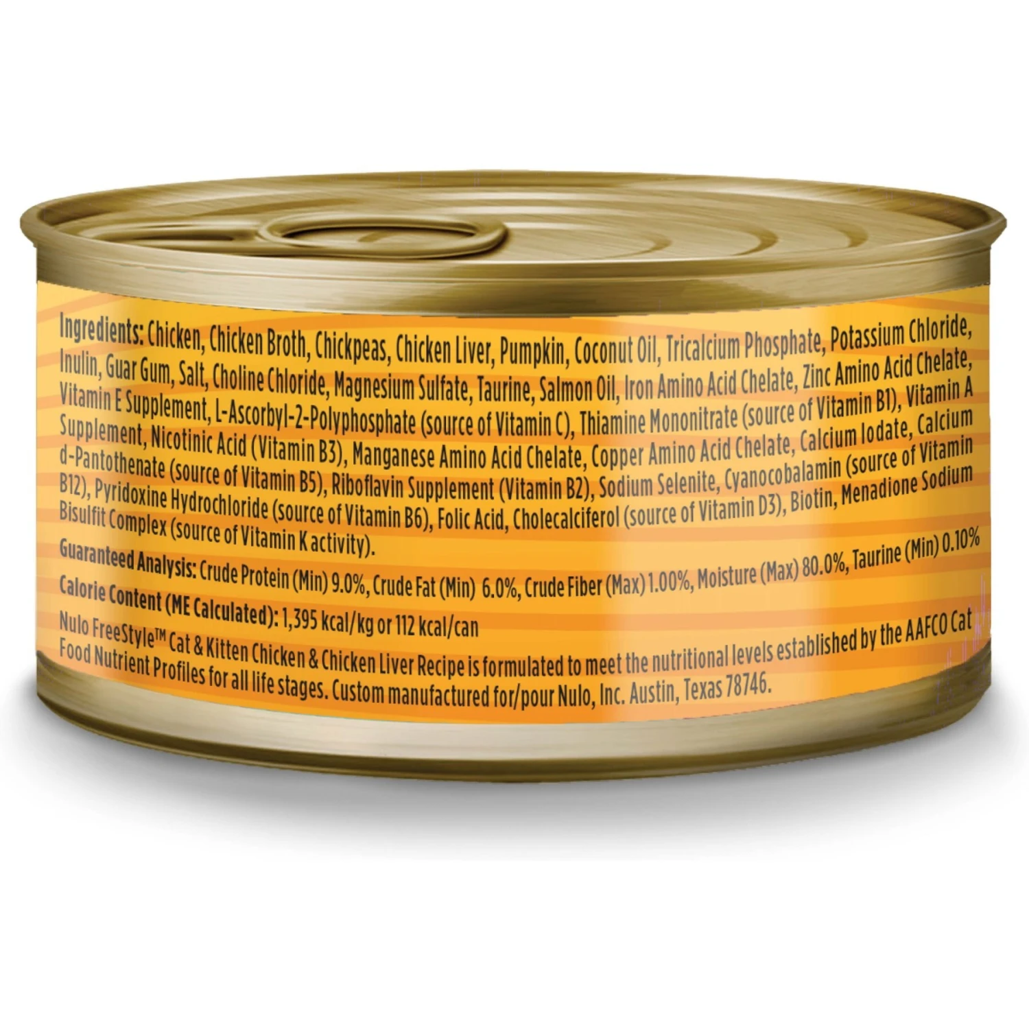 Nulo FreeStyle Chicken & Chicken Liver Pate Wet Cat Food, 2.8-oz can, case of 12—Serve your feline gourmand the flavors he craves with Nulo FreeStyle Cat & Kitten Chicken & Chicken Liver Pate. This smooth, elegant pate is crafted with real chicken, chicken liver and other wholesome ingredients that provide your cat or kitten with essential nutrients. The broth-based gravy helps keep your feline friend hydrated while the high protein content keeps him content after each meal. The pate is finely blended into a soft, manageable texture and delectable taste. The single-serve meals come with easy-open tops so cat servants can easily serve meals right on schedule.