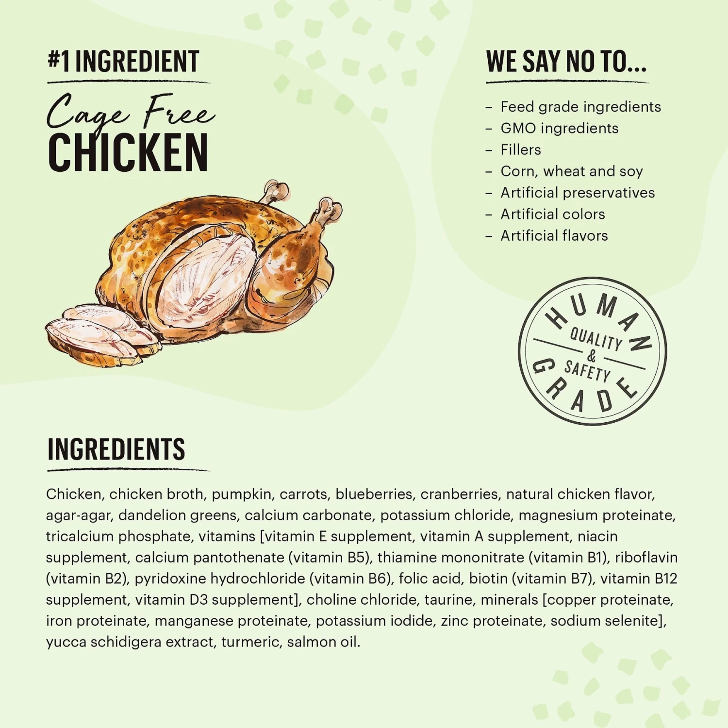 - Made from minced whole muscle and organ meats from cage-free chicken in a savory bone broth gravy to stimulate your kitty’s carnivorous appetite!