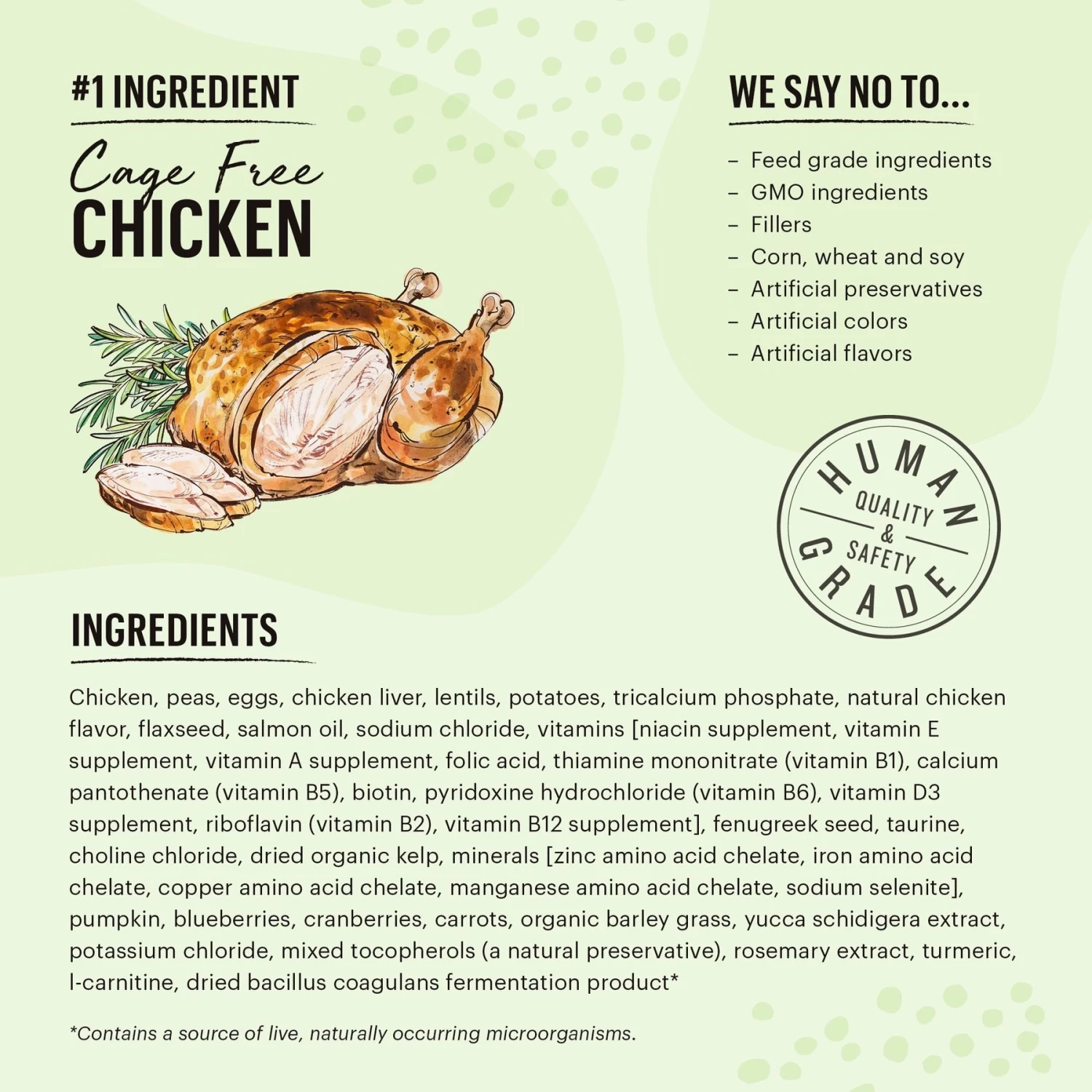 The Honest Kitchen Whole Food Clusters Grain-Free Chicken Dry Cat Food, 4-lb—Give your kitty the nutrition she needs with The Honest Kitchen Whole Food Clusters Grain Free Chicken Dry Cat Food! This grain- and filler-free recipe is purr-pared with 100% human-grade cage-free chicken that’s gently dehydrated to maintain appropriate nutrients, protein levels and crave-worthy taste. It also contains a boost of probiotics to aid digestion. Even the most finicky feline will me-wow at the irresistible taste, and you can rest easy knowing you’re giving her a fur-esh, high-quality meal!