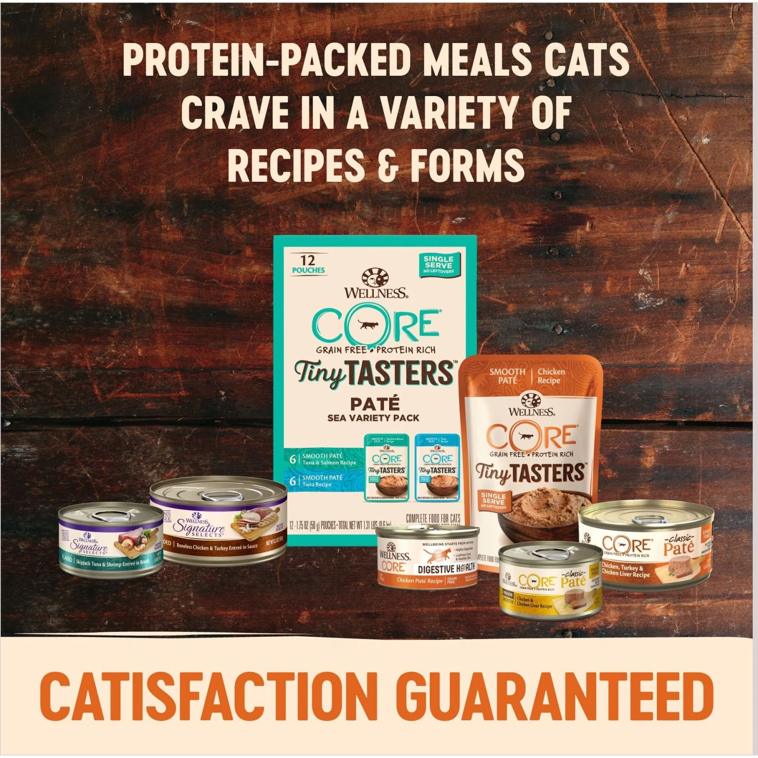 Wellness CORE Tiny Tasters Tuna & Salmon, Tuna Pate Sea Variety Pack Grain-Free Cat Food Pouches