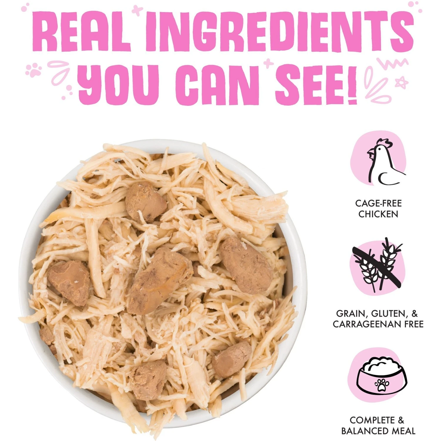 - Grain-free wet food is made with lean chicken and chicken liver as the top ingredients so it’s high in protein sourced from real meat.