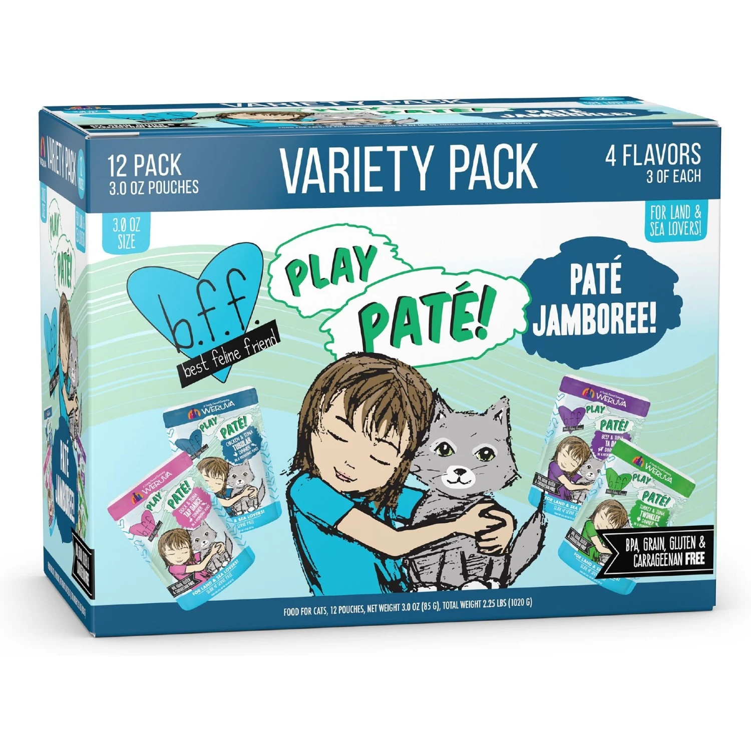 Weruva Best Feline Friend Paté Lovers, Aw Yeah! Paté Jamboree! Variety Pack Grain-Free Wet Cat Food, 2.8-oz Pouch, Case Of 12