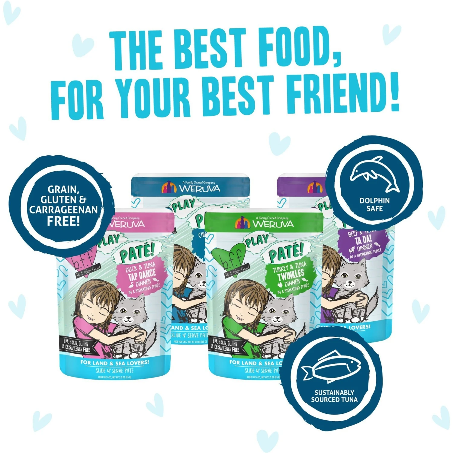 - 4 whisker-licking, all-natural wet cat food recipes crafted with proteins from land and sea, and packaged in an easy-to-serve, Slide N’ Serve Pouch.